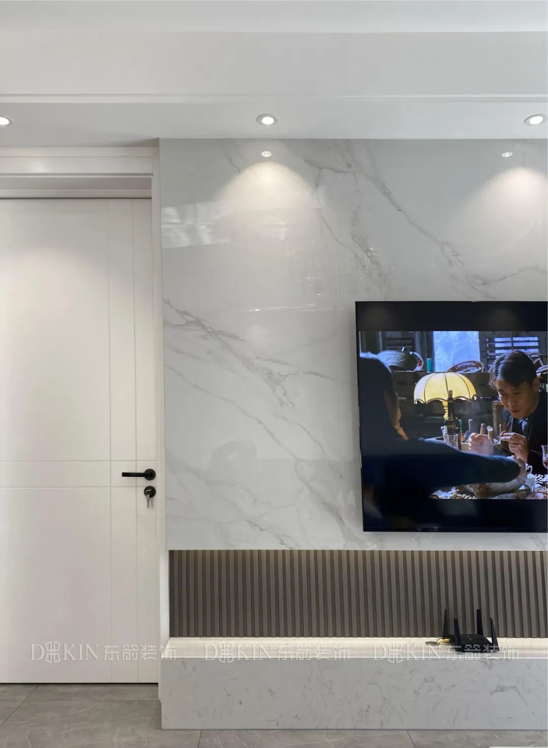 客厅一侧打造了玻璃酒柜,既显得美观又能凸显出客厅大气简约。黑色与白色的搭配呈现出大气而又不失沉稳。