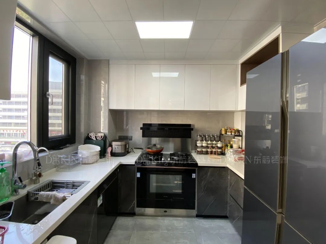 厨房台面L型的设计布局,空间运用合理。
