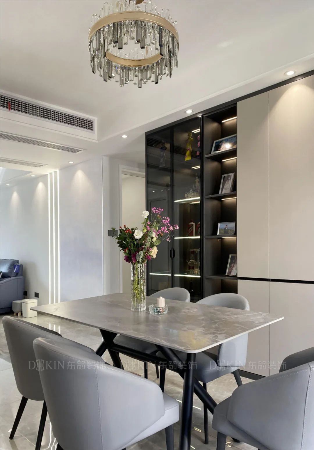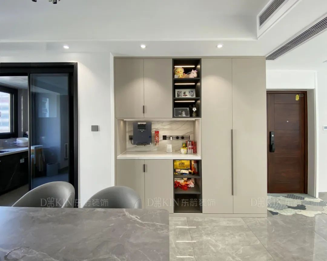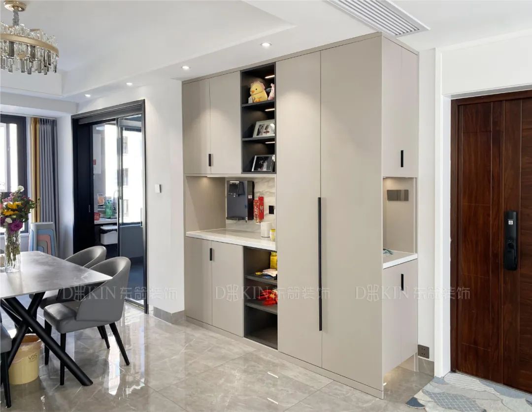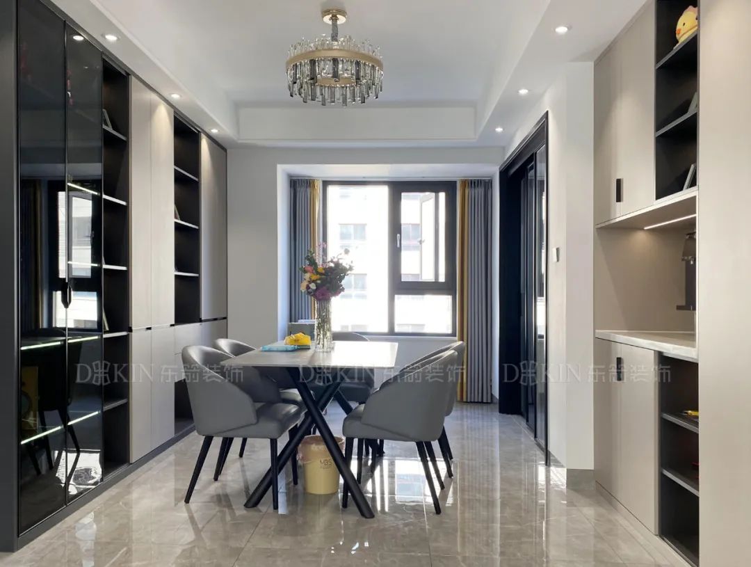 餐厅区域设计了玻璃酒柜,显得更加实用和美观。