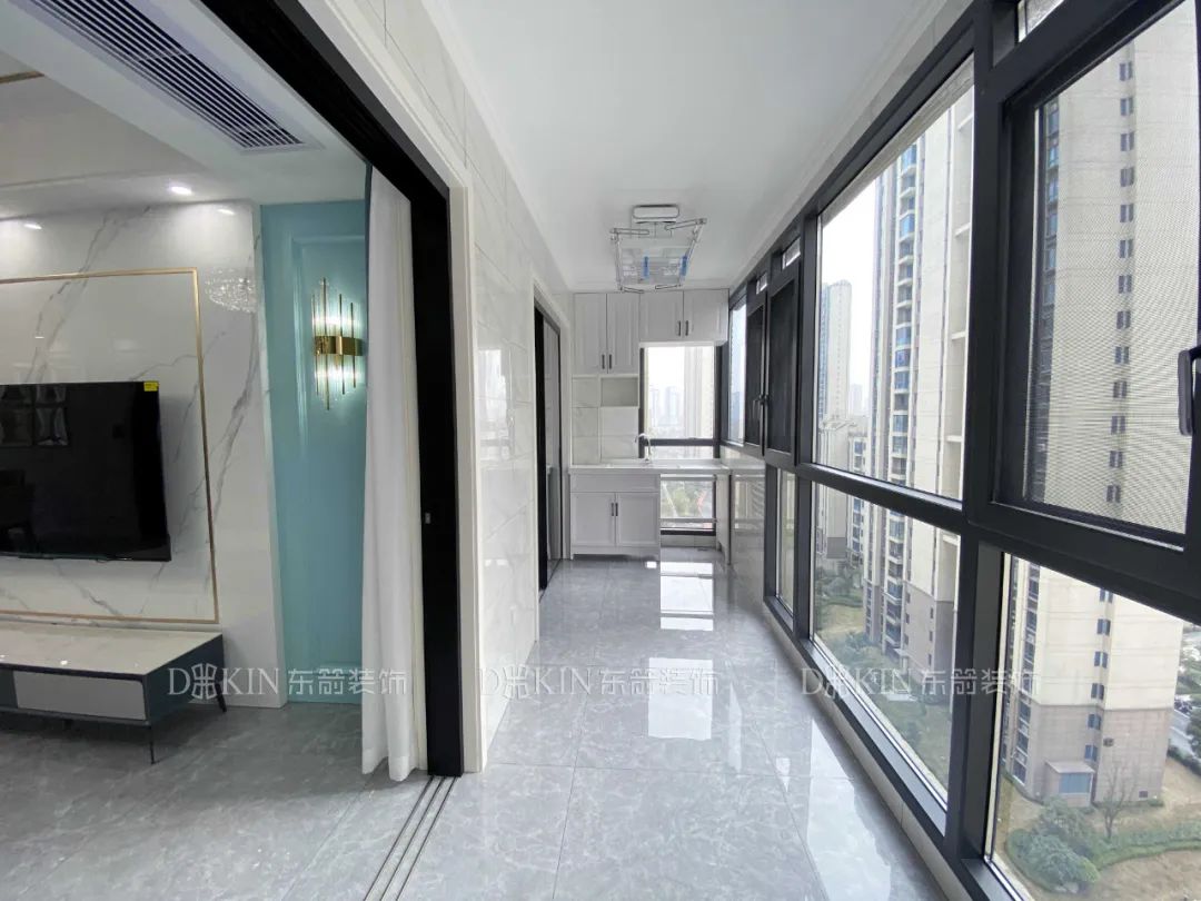 阳台是阳光照射进来的最佳空间,将阳台做成落地窗的风格,不仅拓宽视野空间,也增大了太阳的照射面积,提高了居住舒适性。