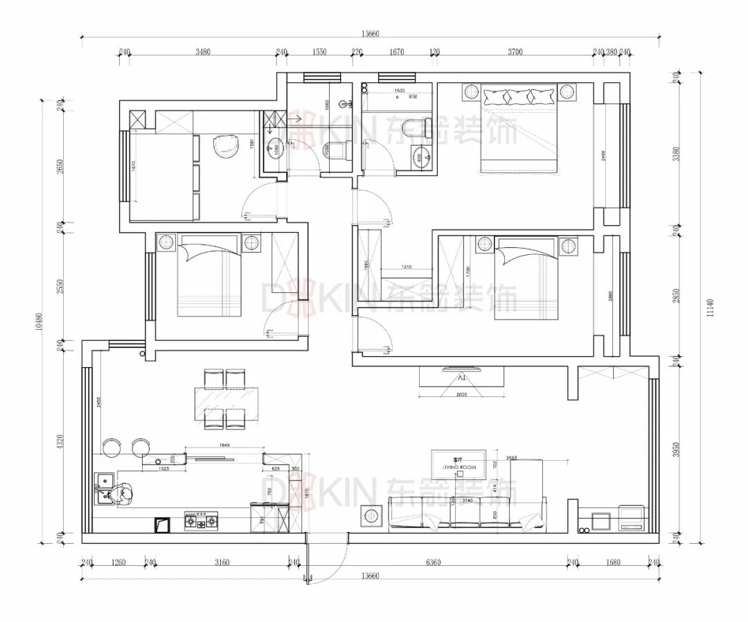 整体以现代简约为主基调,空间通透让整体更有美感。