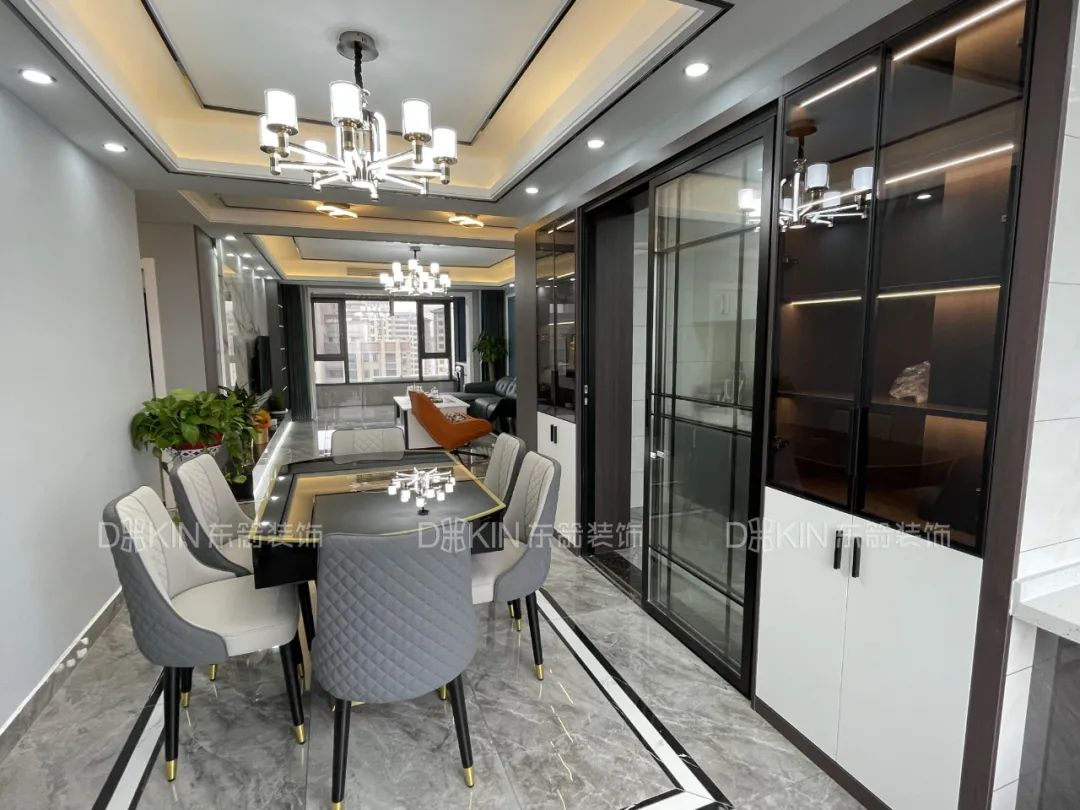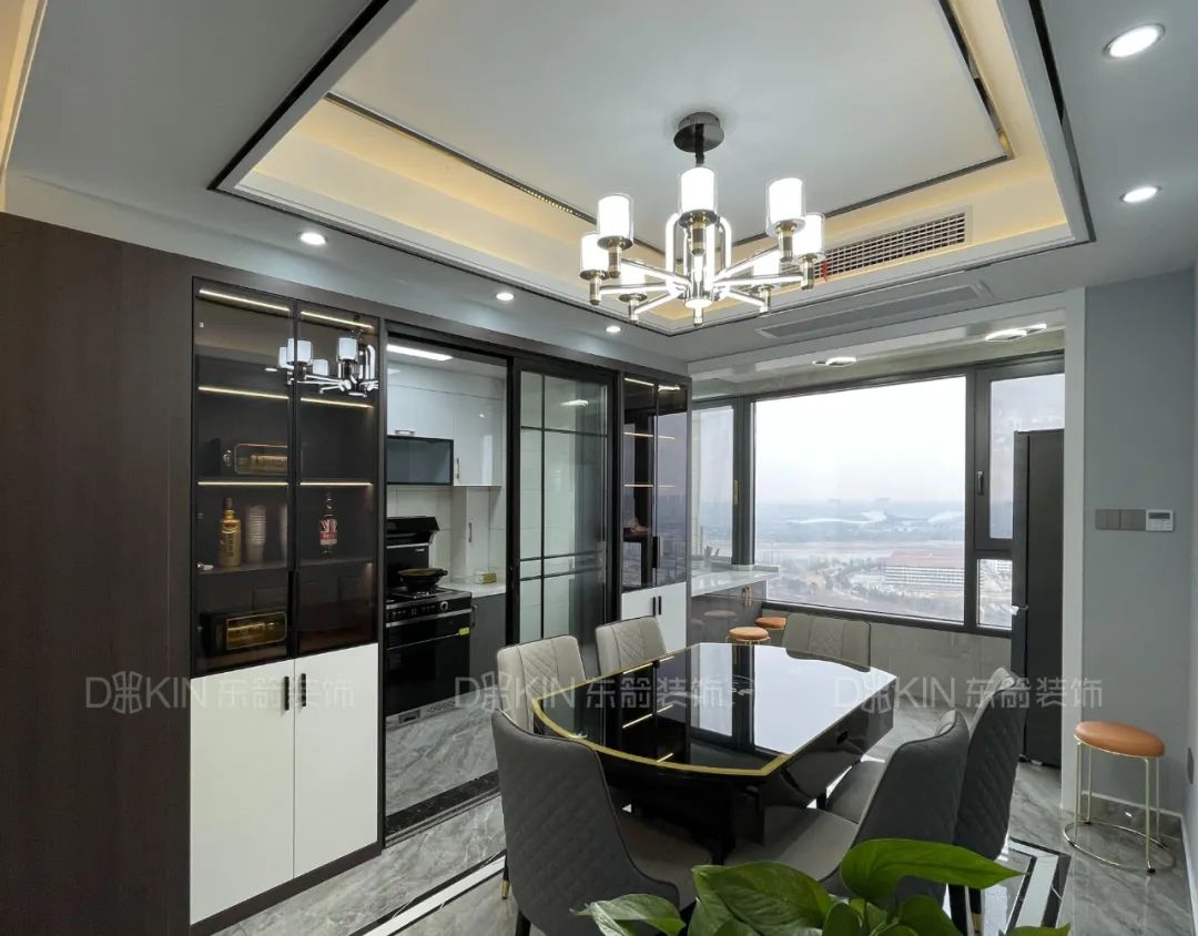2.餐厅与厨房们的区域做了酒柜满足储存和美化空间的作用。