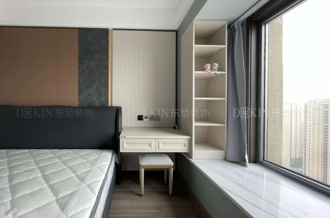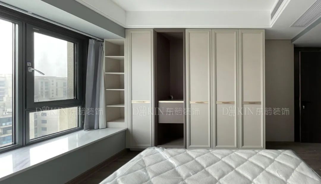 3.主卧定制衣柜和梳妆台体现居家实用感和烘托整体空间层次感。