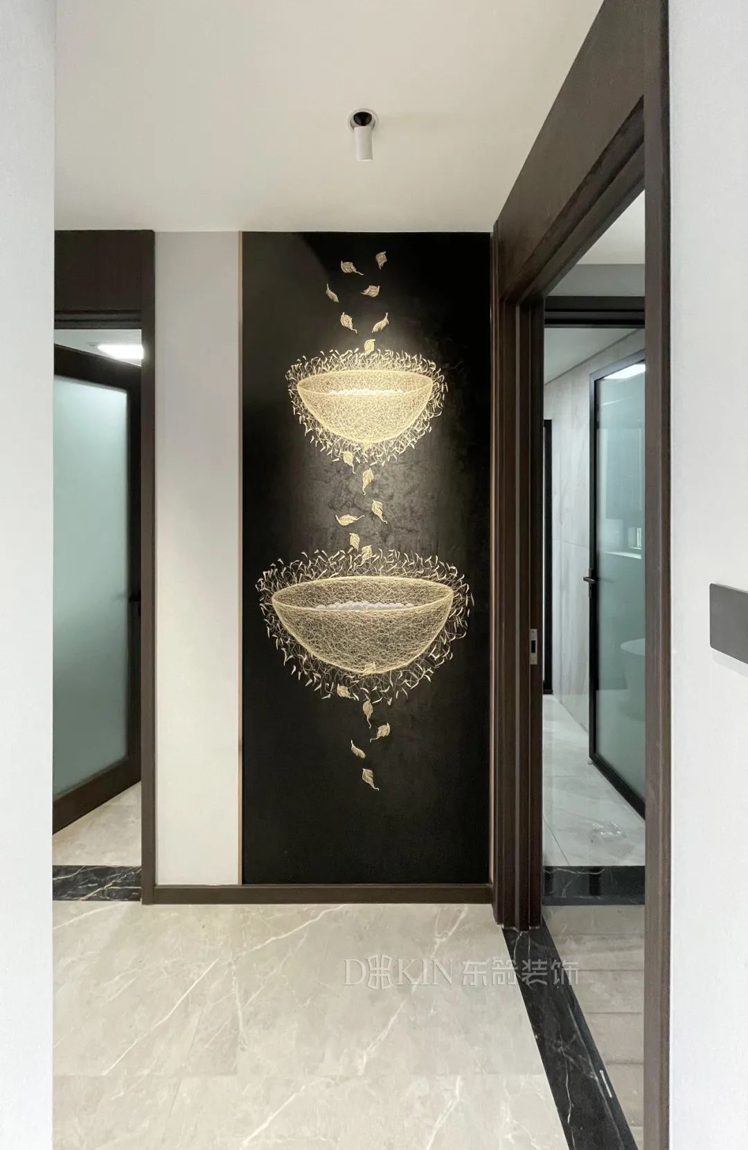 玄关挂画简约自然,整个给人的感觉就是简约年轻化,凸显了层次和神秘感,整体为意蕴深长的现代主义。